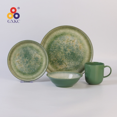 현대 반응성 유약 석기 식기 세트 16pcs 회색 세라믹 접시 그릇 머그컵 OEM 식기 공급 업체