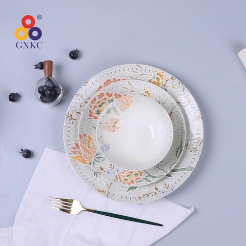 광시 산환 디지털 인쇄 유약 세라믹 식기 석기 식기 세트 호텔 케이터링